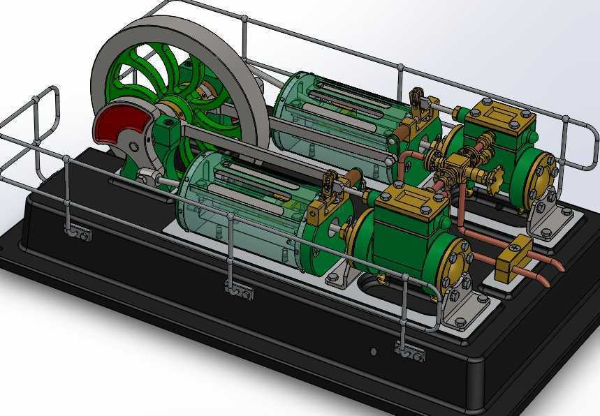 3D模型双缸蒸汽机模型Solidworks设计图形如下: