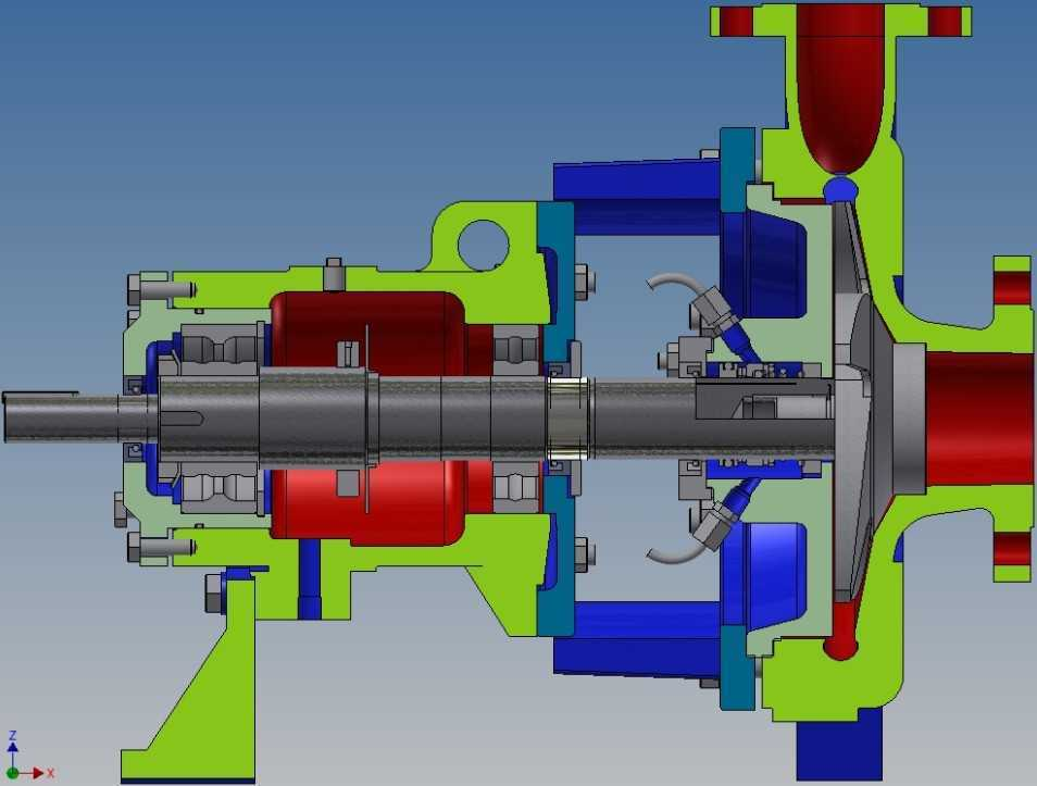 3D模型离心泵的基本构造是由八部分组成的,分别是:叶轮,泵体,泵盖,挡水圈,泵轴,轴承,密封环,填料函,轴向力平衡装置。