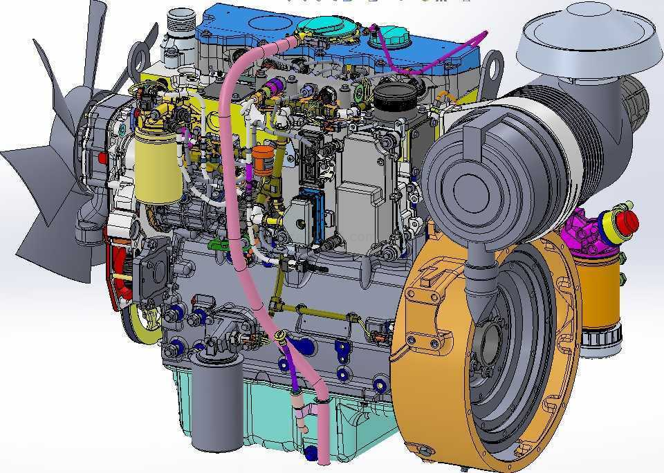 3D模型1104D-E44TA柴油机模型Solidworks设计文件包括289个模型零部件,图形和文件如下: