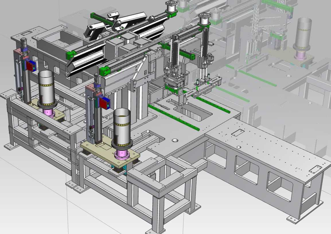3D模型非标双工位自动化机械设备UG设计由气缸驱动的气动机械手沿着线性导轨抓取工件然后在移动放到固定为位置,完成一个工作循环。设备主要是由方管焊接的框架,气缸组成的气动机械手,还有线性导轨,夹具,输送带等组成。
