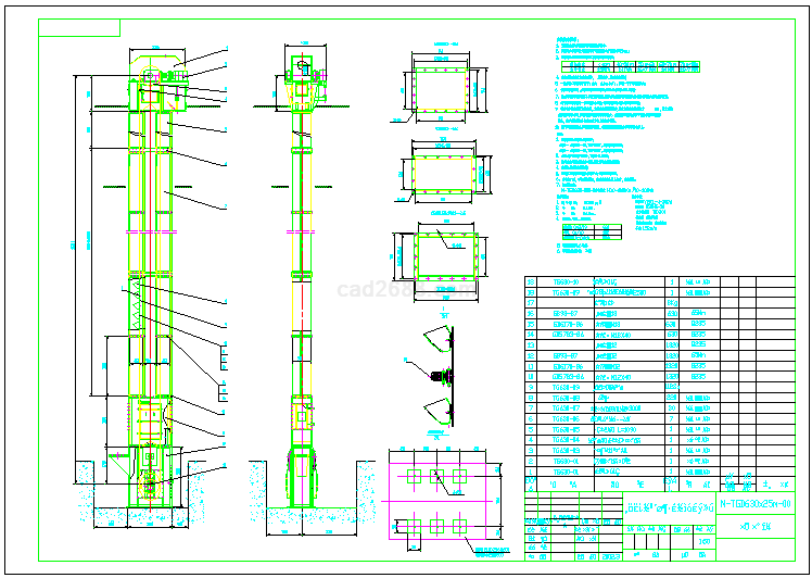 CAD图纸一种钢丝胶带斗式提升机CAD格式如下:
