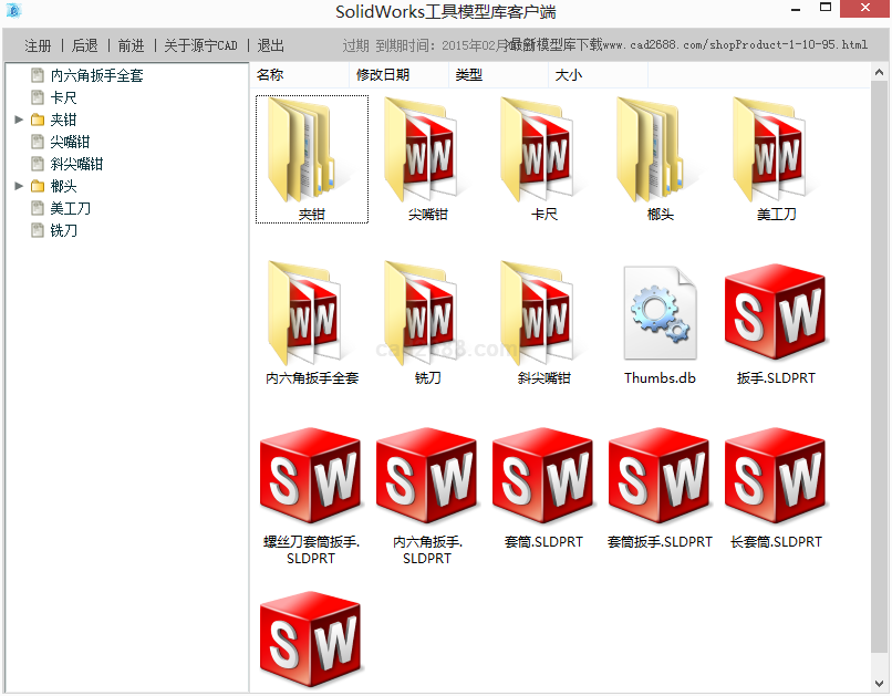 《SolidWorks工具模型库》软件主要是提供卡尺、铣刀、榔头