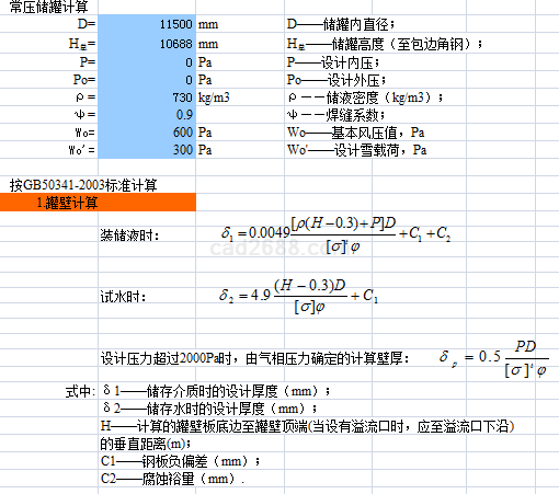 拱顶储罐计算内容如下: