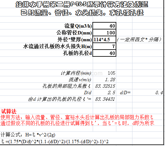 减压孔板阻力系数计算内容如下: