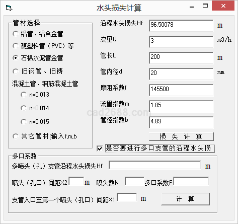 水头损失计算内容如下: