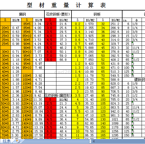 材料重量计算内容如下: