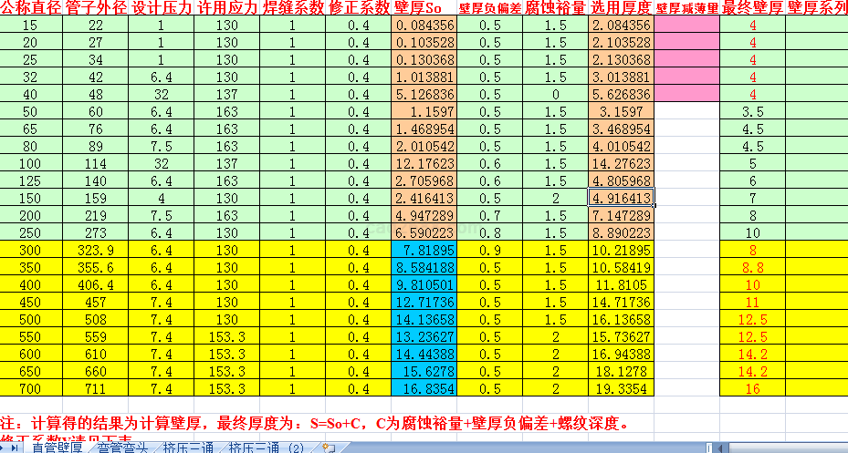 管件壁厚计算内容如下:
