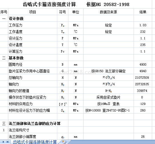 齿啮式卡箍连接强度计算内容如下: