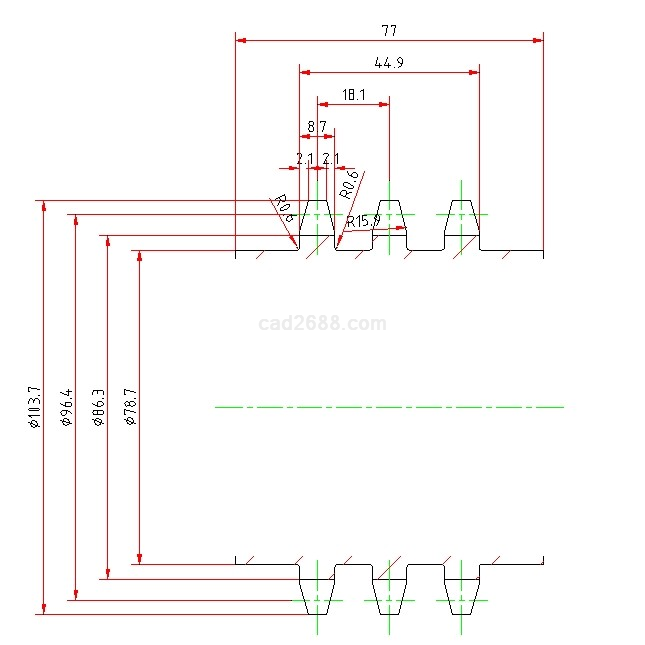 分度圆直径d1 = p/sin(180/z1) = 151.995 mm
