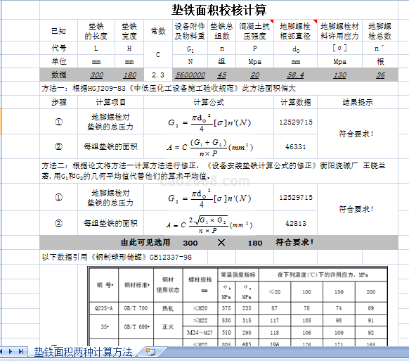 垫铁面积校核计算内容如下: