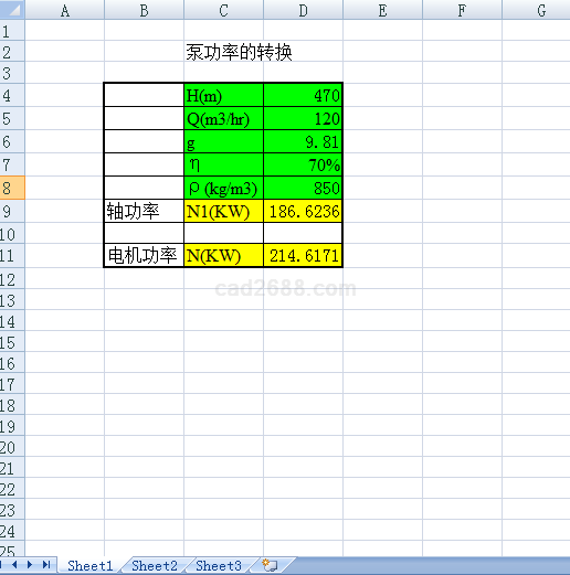 泵功率转换计算内容如下: