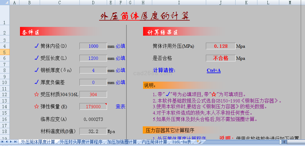 外压筒体封头厚度计算为0元购产品,注册会员后,即可免费购买下载0元购产品,在订单详细信息中点击下载链接,下载该文件!