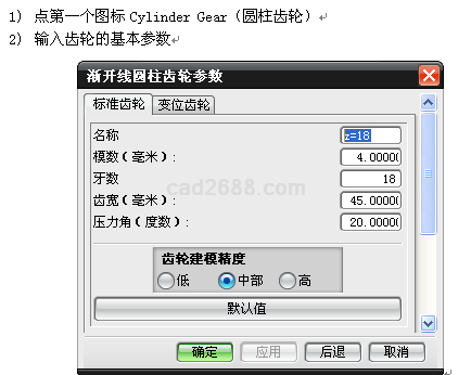 1) 点第一个图标CylinderGear(圆柱齿轮)