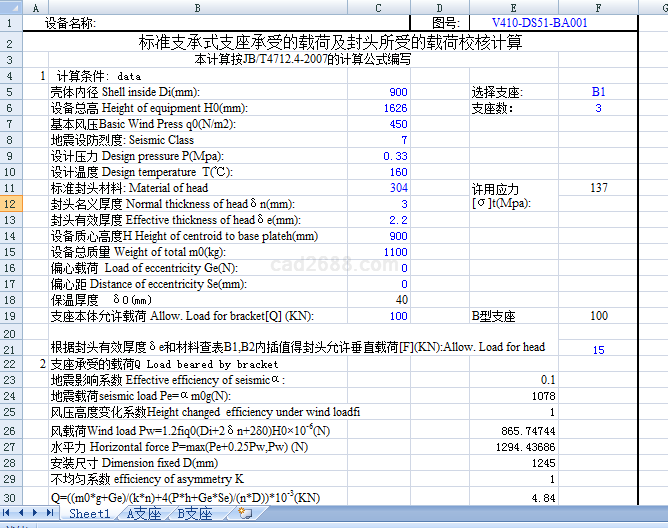 支撑式支座计算容如下: