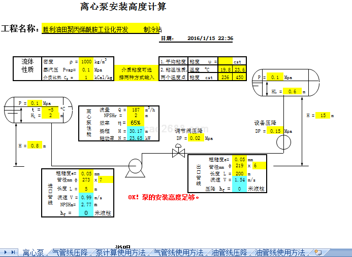 离心泵安装高度计算内容如下: