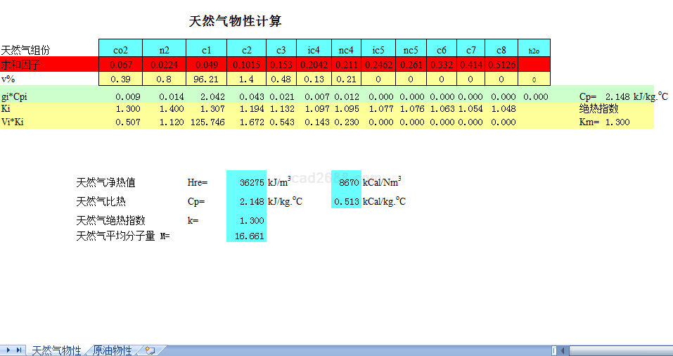 天然气原油物性计算内容如下: