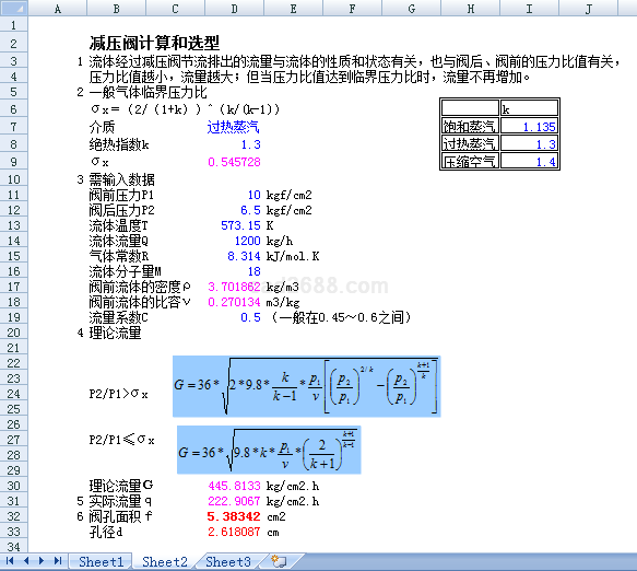 减压阀选型计算内容如下: