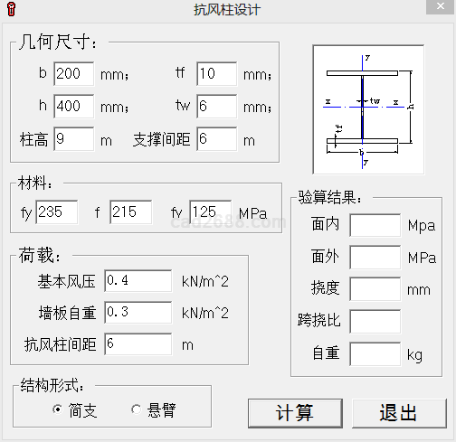 抗风柱计算内容如下:
