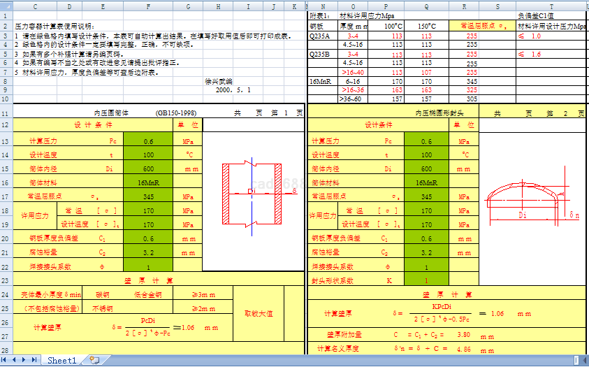 压力容器计算内容如下: