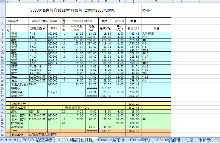 容器压力预算内容如下: