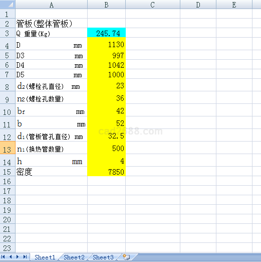 管板重量计算内容如下: