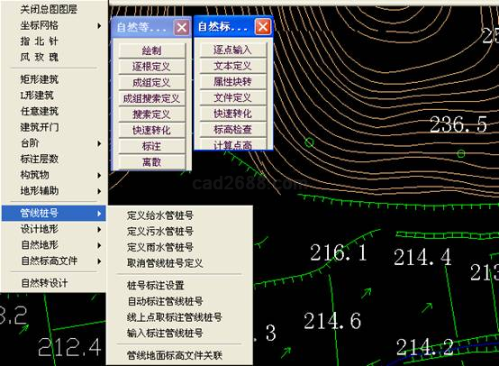 19.管道桩号断面, 当用户不选择设计标高文件时,程序自动取自然标高文件计算,方便长距离的野外输水管道设计。