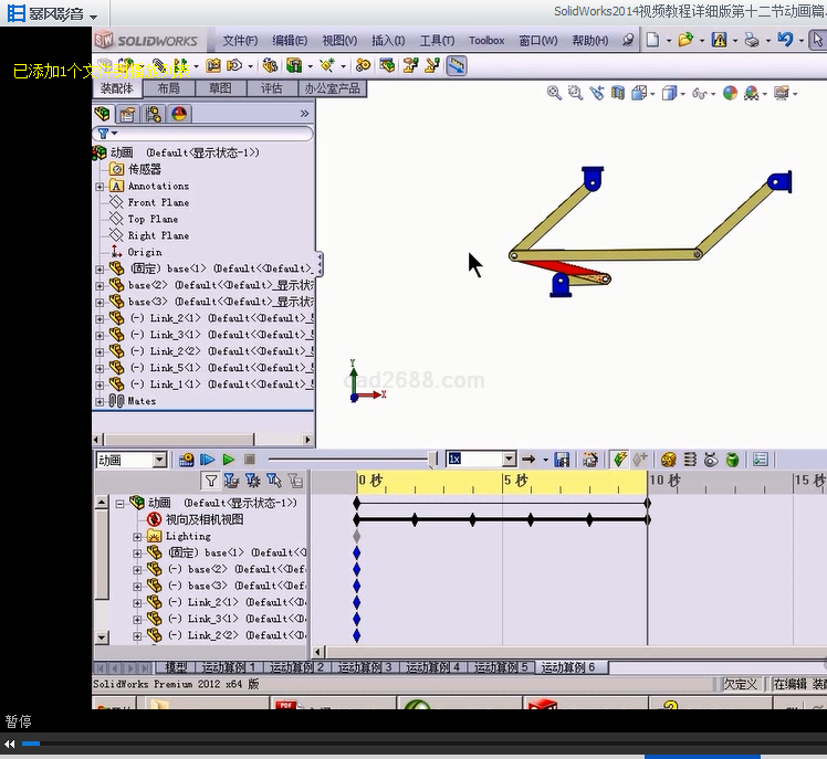 SolidWorks2014视频教程详细版第十二节动画篇为0元购产品,注册会员后,即可免费购买下载0元购产品,在订单详细信息中点击下载链接,下载该文件!