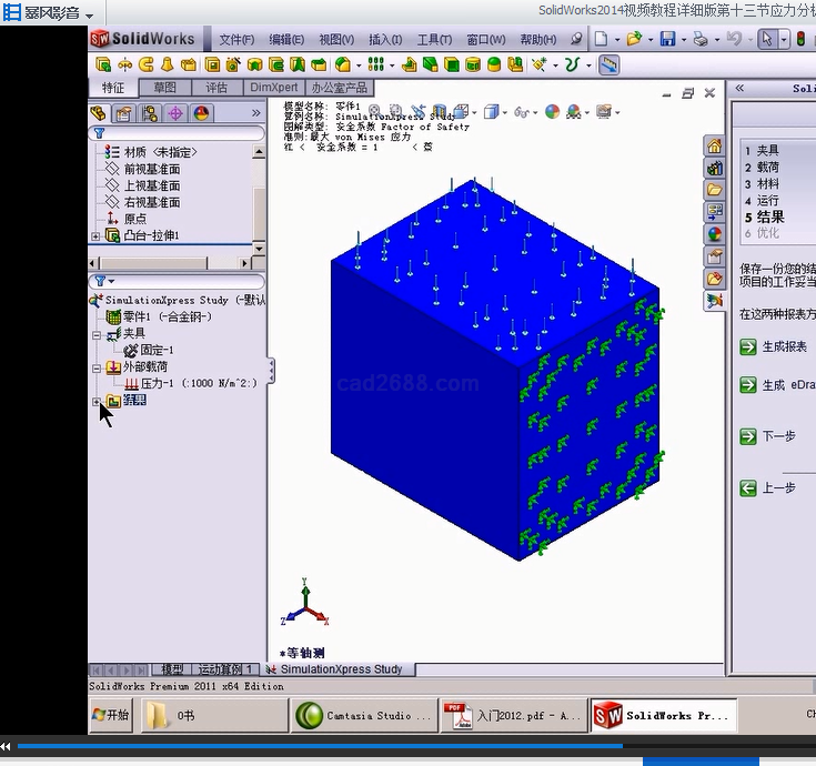 SolidWorks2014视频教程详细版第十三节应力分析篇包括的内容如下: