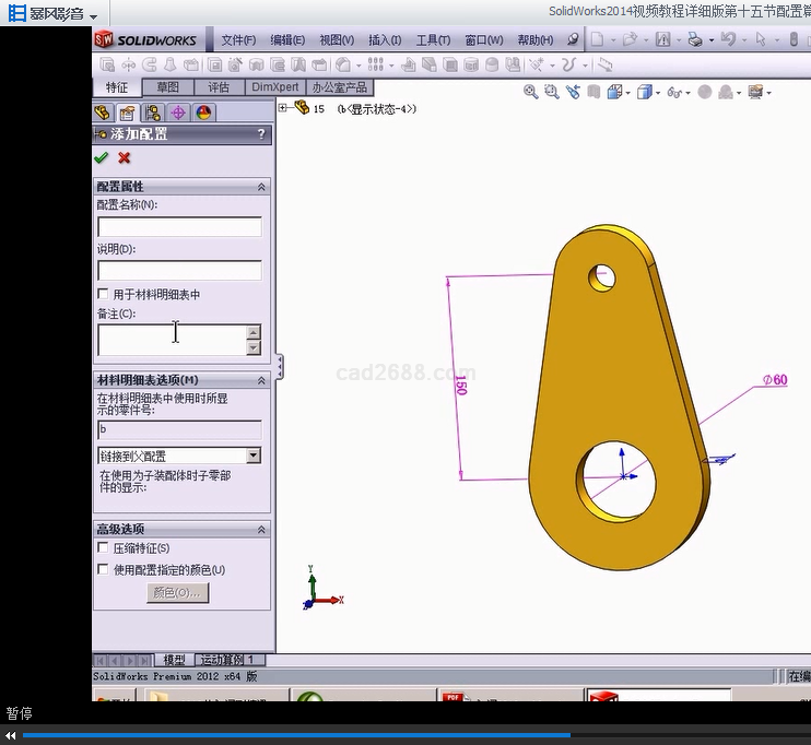 SolidWorks2014视频教程详细版第十五节配置篇为0元购产品,注册会员后,即可免费购买下载0元购产品,在订单详细信息中点击下载链接,下载该文件!