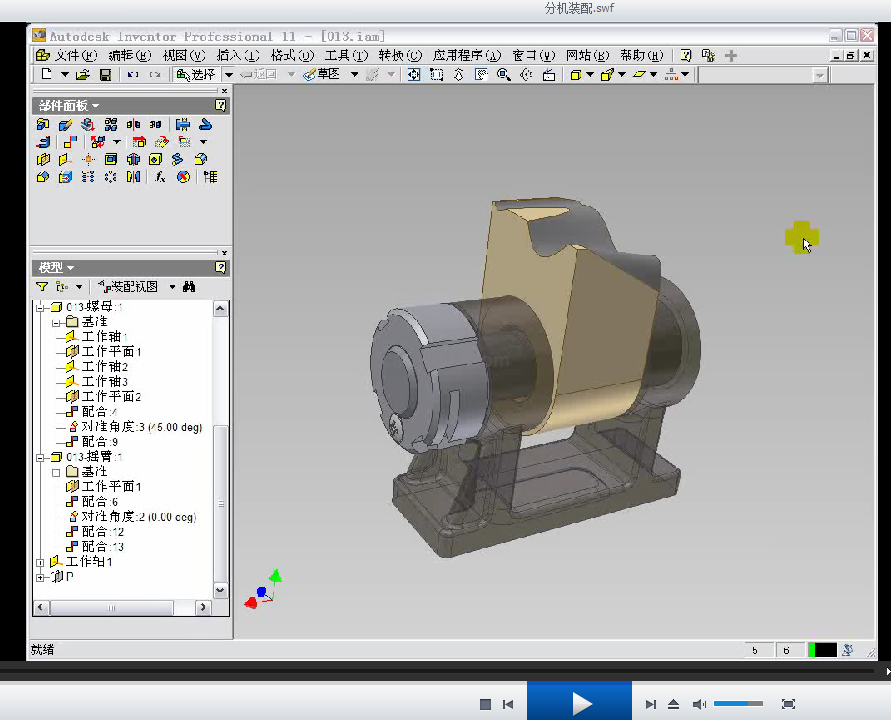 Inventor装配教学视频及实例由资深工程师录制,教学视频详细的表达了Inventor装配设计的过程,以及所使用的命令。