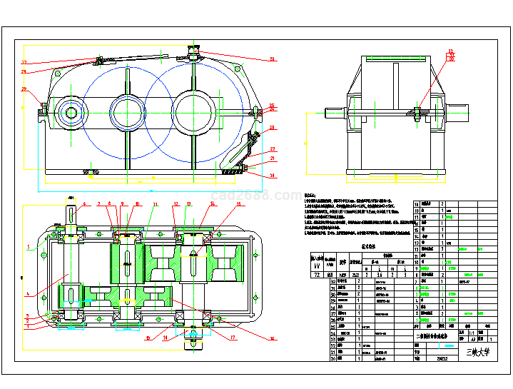 本产品为0元购产品,注册会员后,即可免费购买0元购产品下载!二级展开式圆柱齿轮减速机装配图及部分零件图CAD格式图形如下: