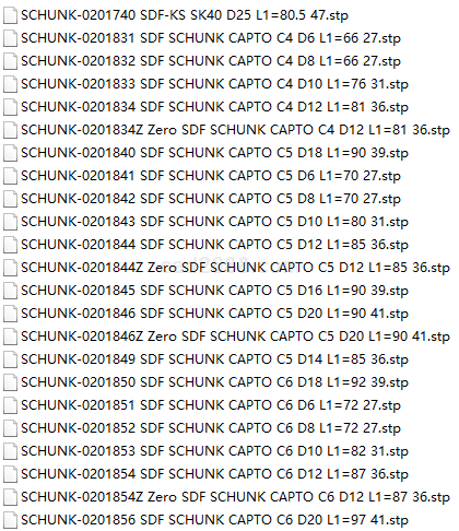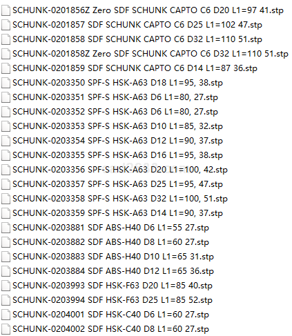 SCHUNK雄克刀柄3D模型Solidwokrs/IGS/STP格式内容如下: