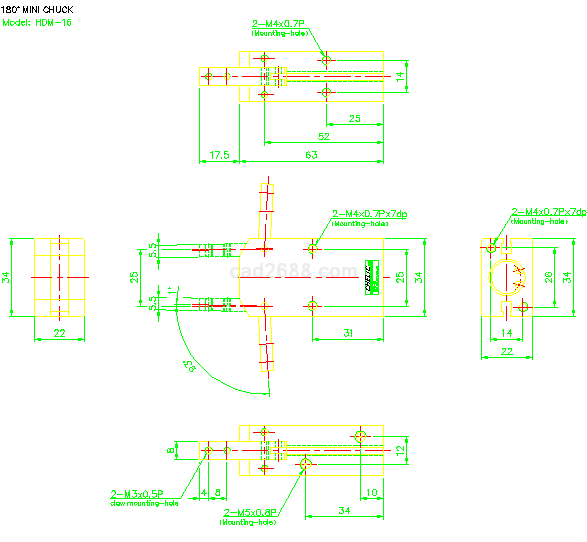 气立可CHELIC机械夹爪CAD图纸包括180 O 机械夹、Y型机械夹、大口机械夹、滑轨平行夹、滑轨型平行机械夹、平行机械夹、三爪机械夹、支点式微型卡盘等系列图纸,格式DWG用AutoCAD2010以上版本软件都可以打开调用编辑,数量为70个图纸文件。