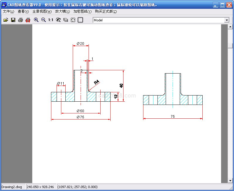 1、可以按住鼠标右键对图纸进行拖动查看;