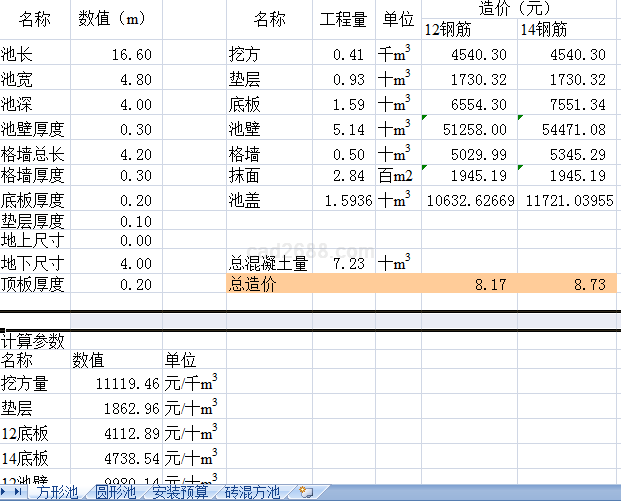 混凝土造价计算程序内容如下: