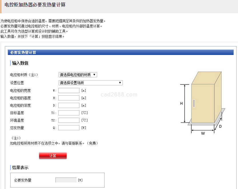 东方马达电控柜加热器必要发热量计算为在线计算,您可以直接在下面的参数中输入数据,之后点击计算,完成计算过程,具体参数输入如下: