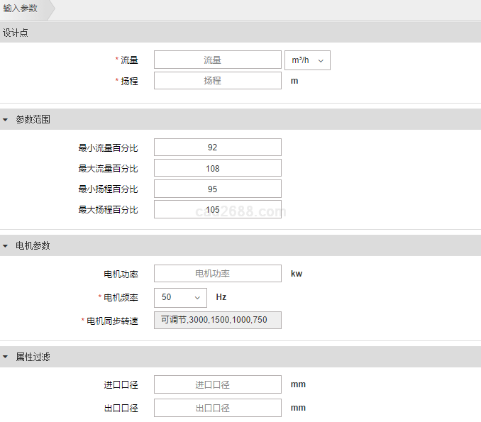 南方泵业在线选型计算,您可以直接在下面的参数中输入数据,之后点击计算,完成计算过程,具体参数输入如下: