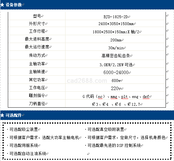 全钢结构,采用重型机床的台面和龙门式横梁结构,结构稳固。·配备维宏控制系统,出色的控制技术和强大引擎让本机在各种行业应用中表现出色。从标准化的批量生产到个性化的制作都能游刃有余。·智能加工越界保护,防止设计版面超过加工幅面引起的机械碰撞现象。·多种软件兼容:先进的专业控制系统,兼容多种软件Type3/Artcam/Castmate/Pro-e/Ug/Cad/Illustrator/文泰·长时间工作:可实现断电、断点、隔天加工,方便省力。·高速度加工:高动能、Y轴双电机驱动,曲、直线速度一致.