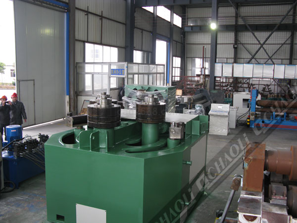 我公司生产的型材卷弯机是一种专用于卷弯角钢、槽钢、工字钢、扁钢、方钢、圆钢等各种异型钢材的高效加工设备,可一次上料完成卷圆、校圆工 序,广泛用在石油、化工、水电、造船及机械制造等行业。该机的两下辊为主传动辊,也可三个工作辊为主传动辊,两个边辊围绕固定回转中心作弧线升降运动,两侧设有托辊装置,有利于保证非对称截面型 材卷制质量。本机结构先进,工作可靠,体积小,功能齐全,是目前国内外先进的型材成型设备。机器可配置结构先进的通用或专用模具,该机操作方便、效率高,倍受用户欢迎。