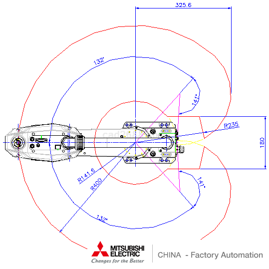 三菱工业机器人外形动作范围CAD图纸DXF格式产品为0元购产品,注册会员后,即可免费购买下载0元购产品,在订单详细信息中点击下载链接,下载该文件!