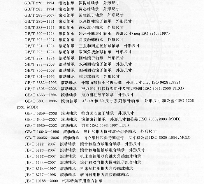 轴承标准 GB轴承 轴承型号 轴承尺寸 轴承类型PDF格式 轴承标准在线PDF标准如下: