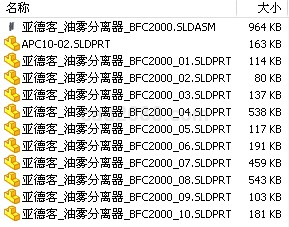 solidworks模型亚德客_油雾分离器_BFC2000装配体模型包括的零部件模型如下: