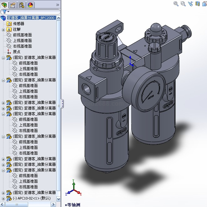 solidworks模型亚德客_油雾分离器_BFC2000装配体模型如下: