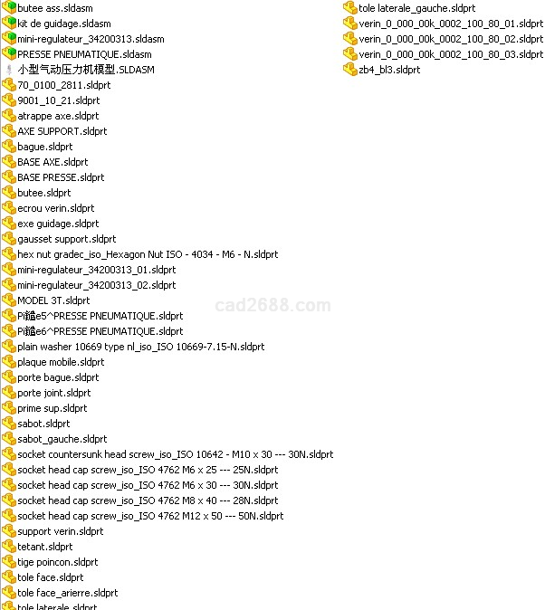 solidworks模型小型气动压力机模型装配体模型包括的零部件模型如下: