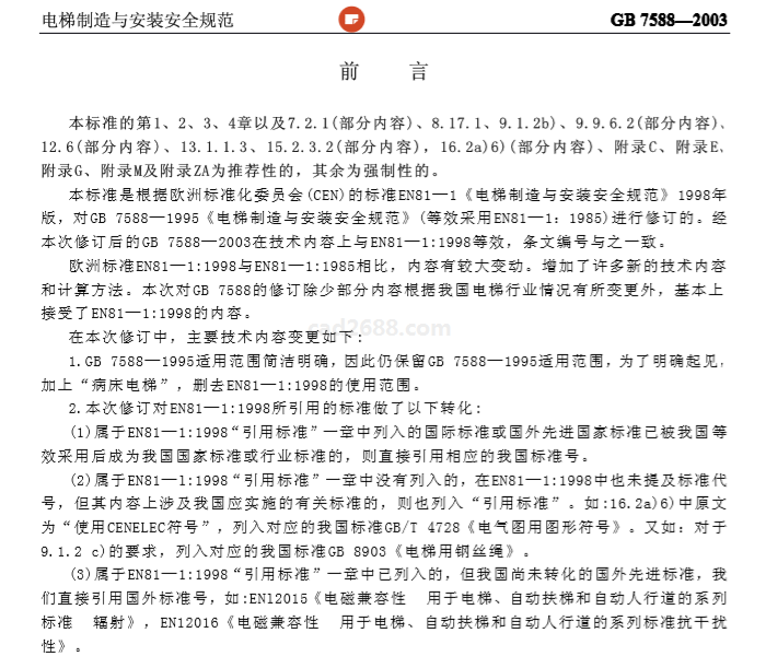 电梯标准 GB7588-2003《电梯制造与安装安全规范》PDF格式