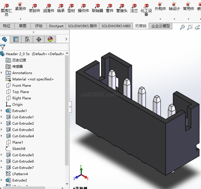 插头模型设计实例Solidworks设计模型产品为0元购产品,注册会员后,即可免费购买下载0元购产品,在订单详细信息中点击下载链接,下载该文件!