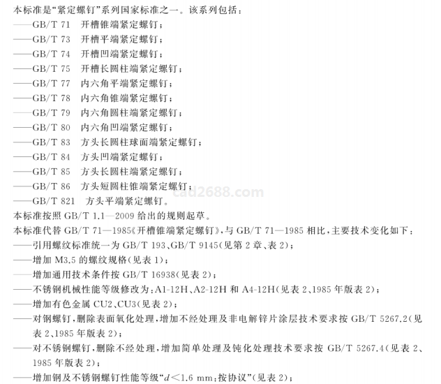 GB紧定螺钉 GB∕T71-2018 开槽锥端紧定螺钉 GB∕T75-2018 开槽长圆柱端紧定螺钉 GBT 2673.2-2020内六角花形高沉头螺钉 GBT821-2018 方头平PDF格式为0元购产品,注册会员后,即可免费购买0元购产品,在订单详细信息中点击下载链接,即可下载该文件!或点击下面链接直接查看: