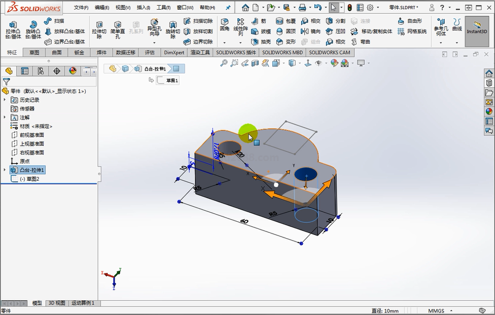 SolidWorks2018教学视频使用Instant3D修改零件 AVI格式为0元购产品,注册会员后,即可免费购买0元购产品,在订单详细信息中点击下载链接,即可下载该视频文件!