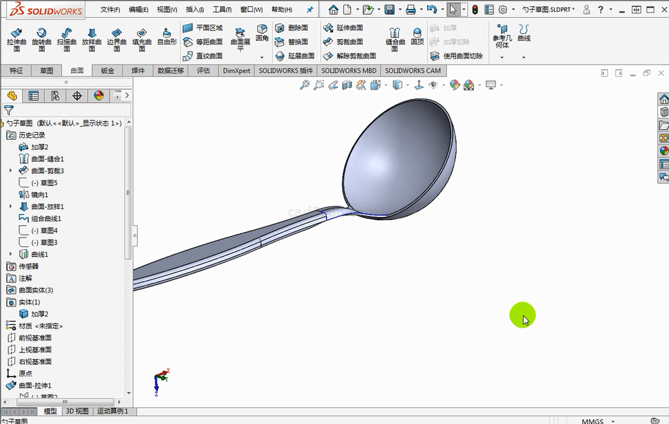 SolidWorks2018教学视频 勺子曲面造型MP4格式 内容如下: