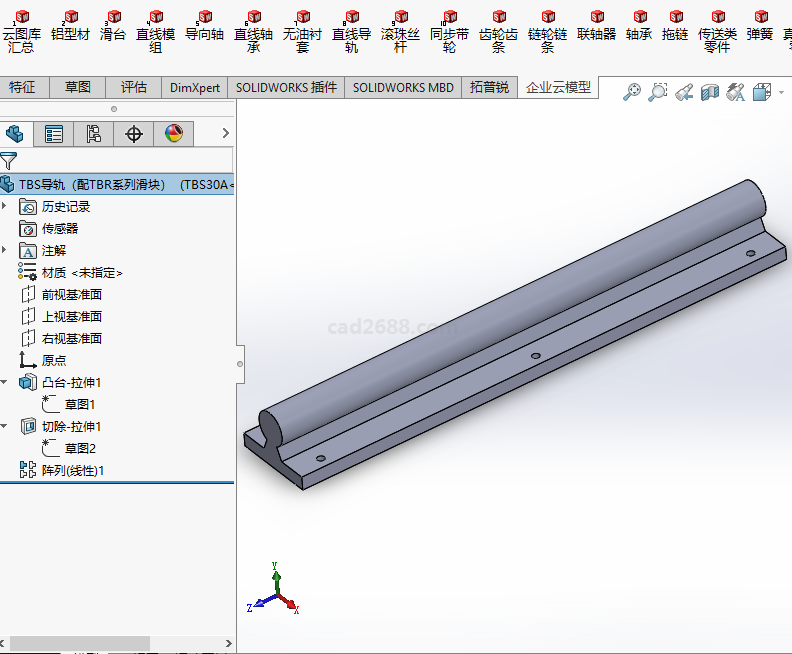 solidworks设计案例TBS导轨(配TBR系列滑块)3D模型 导轨3D模型 导轨设计产品为0元购产品,注册会员后,即可免费购买下载0元购产品,在订单详细信息中点击下载链接,下载该文件!